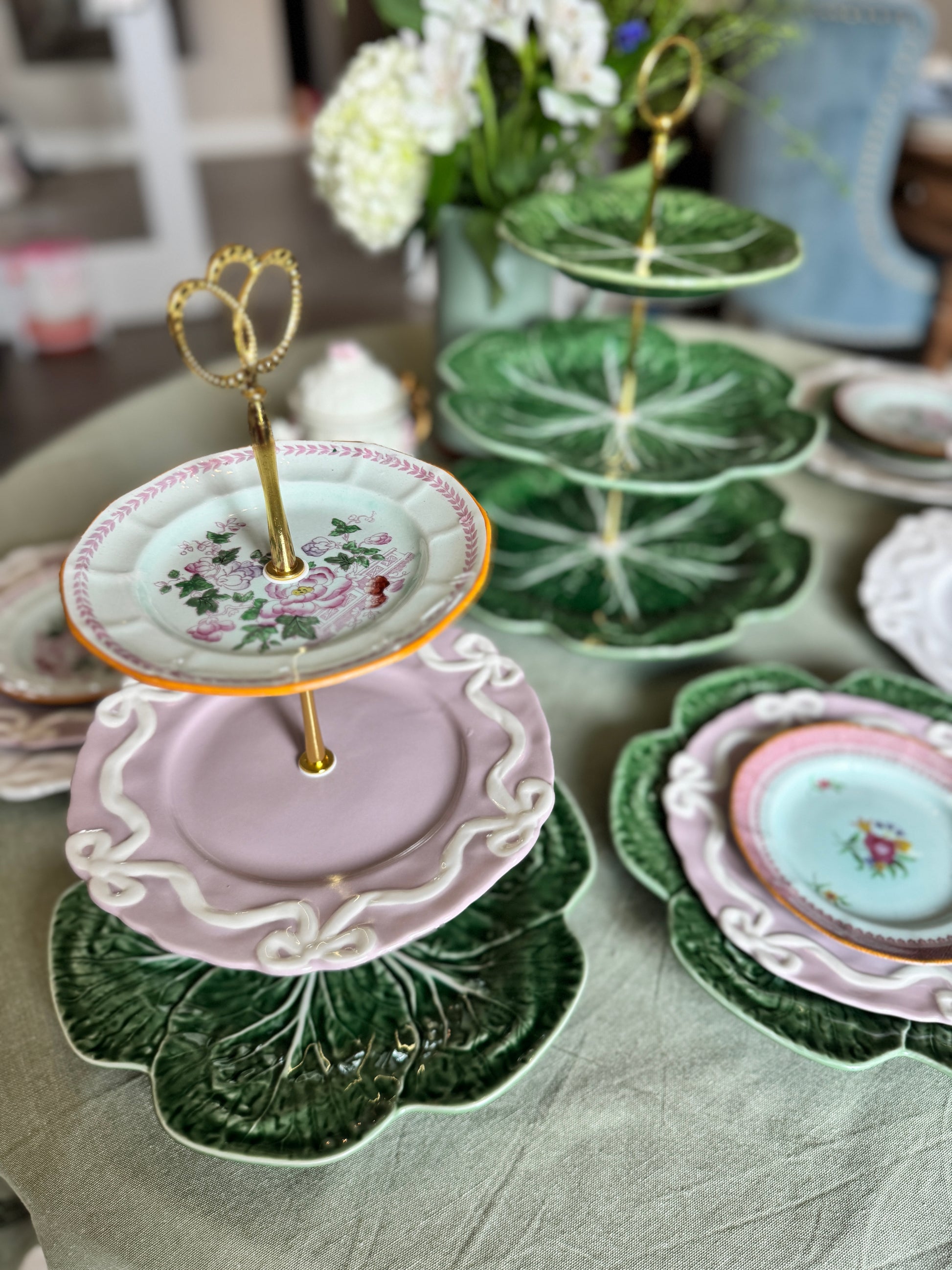 Adam’s Calix, Anthropologie Benedita Bow & Bordallo Cabbage Tiered Stand – Vintage & Designer China