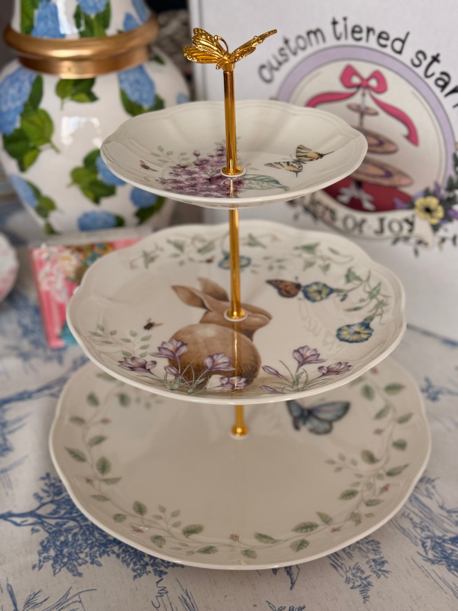 Lenox Butterfly Meadow Tiered Stand – Floral & Butterfly Three-Tier Server