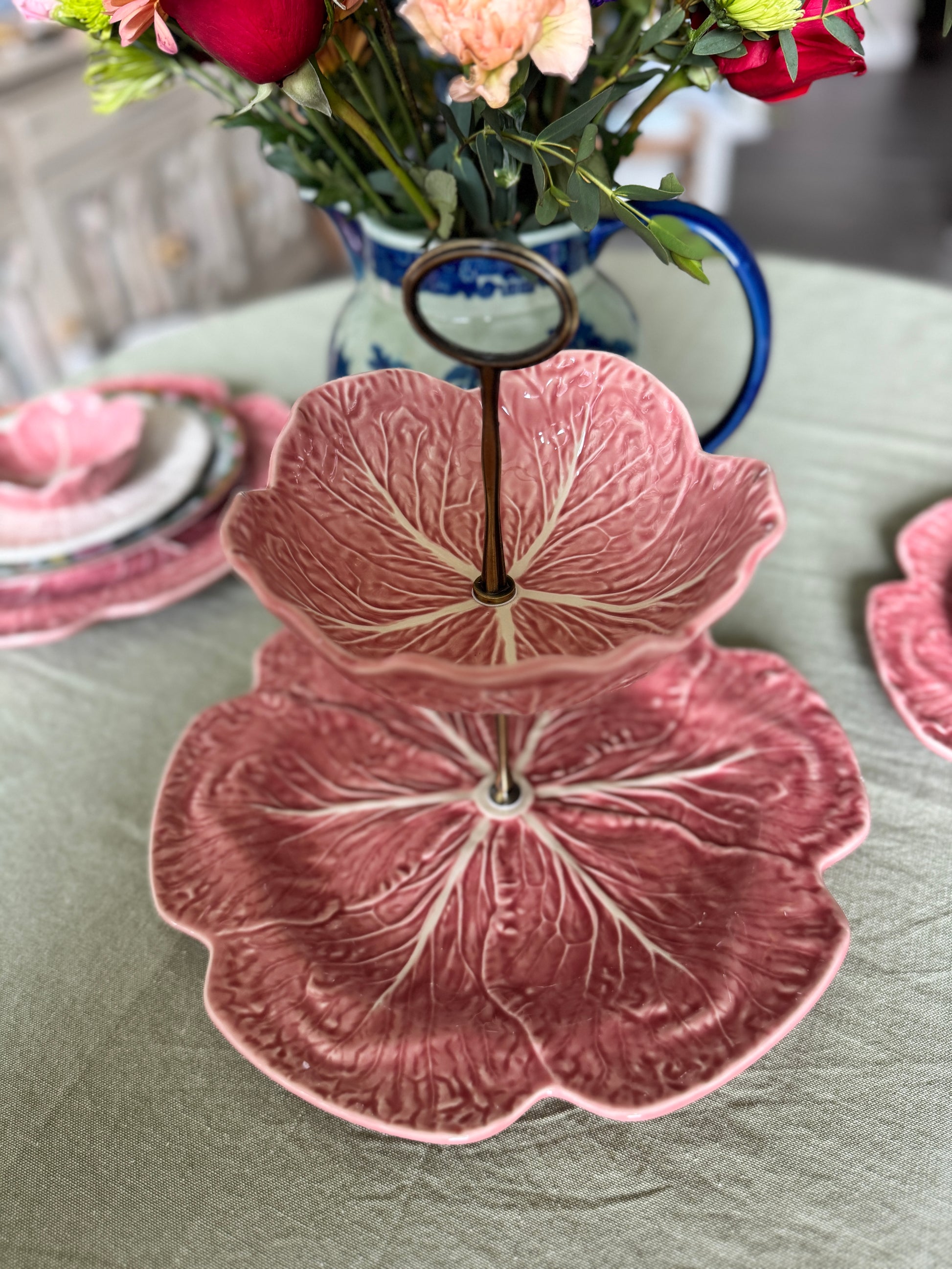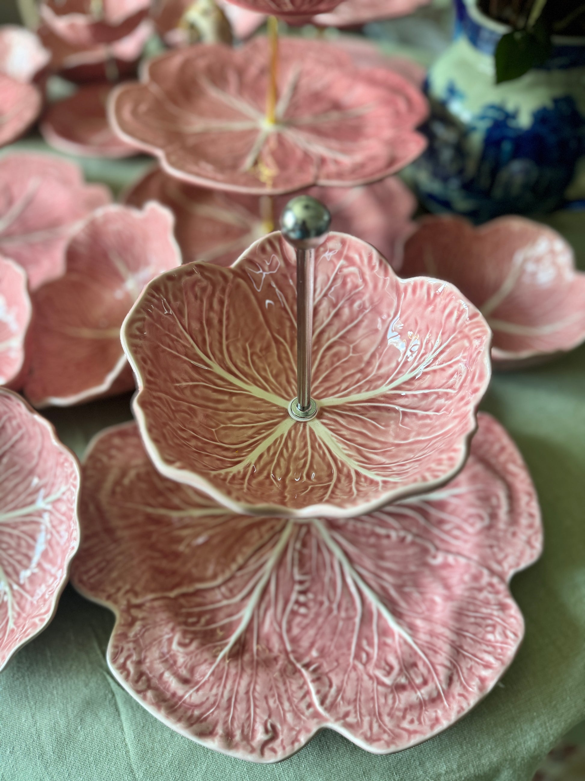 Pink Bordallo Pinheiro Cabbage 2-Tier Stand – 12 Inch Base Plate | Exclusive to Tiers of Joy