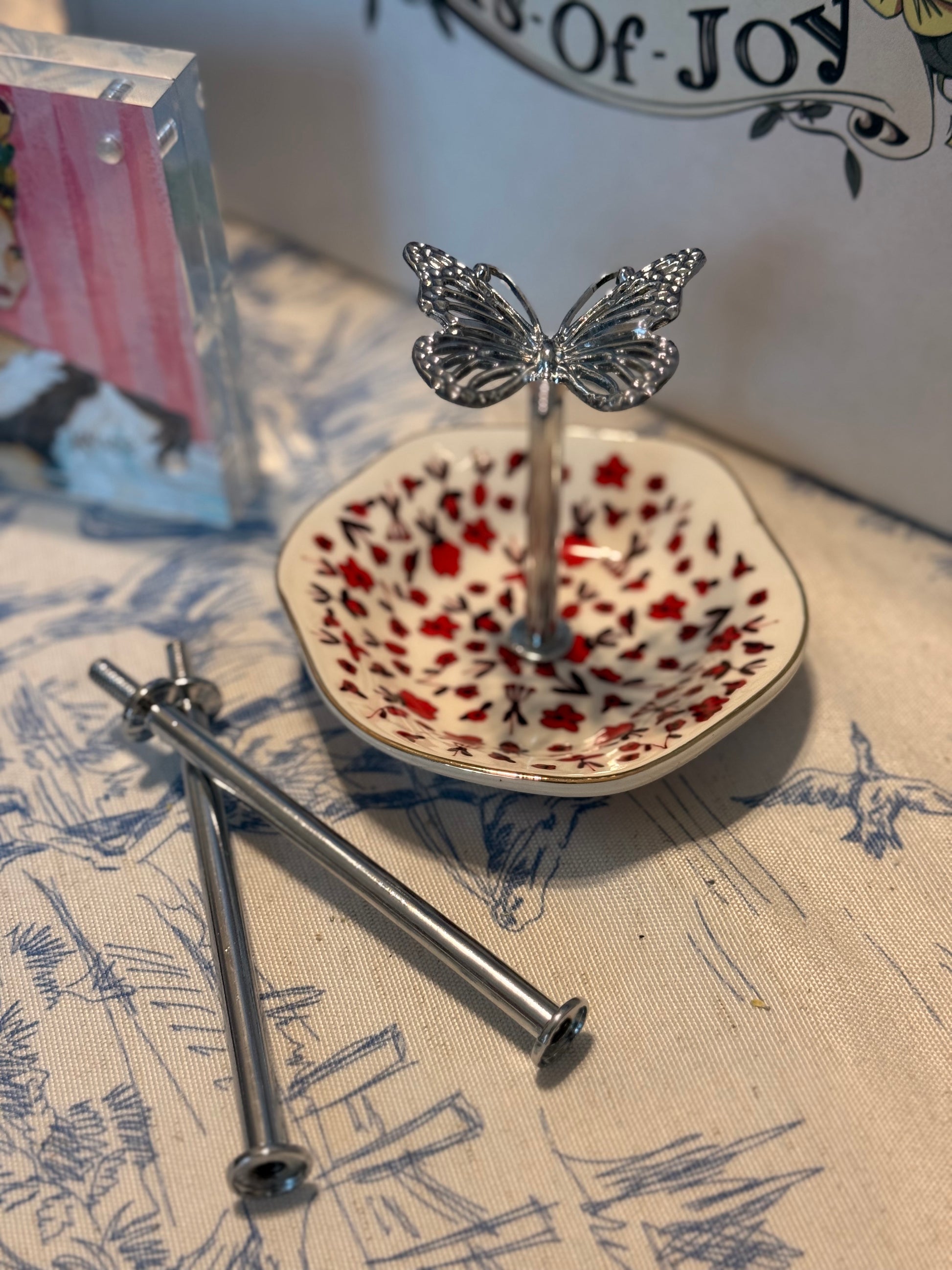 Our exclusive silver butterfly hardware is a signature finishing touch at Tiers of Joy—designed to add warmth, elegance, and a hint of whimsy to your tiered stand.