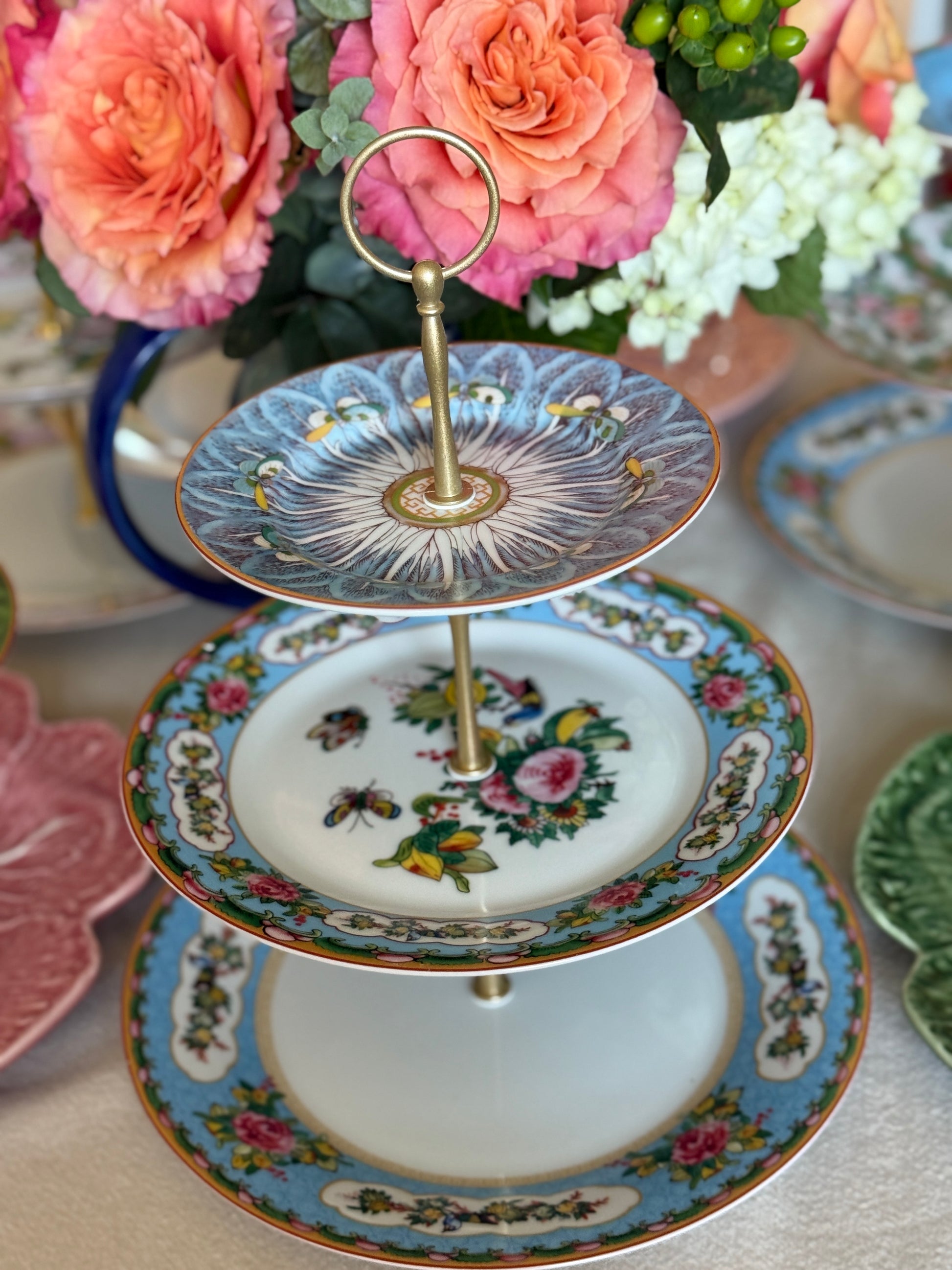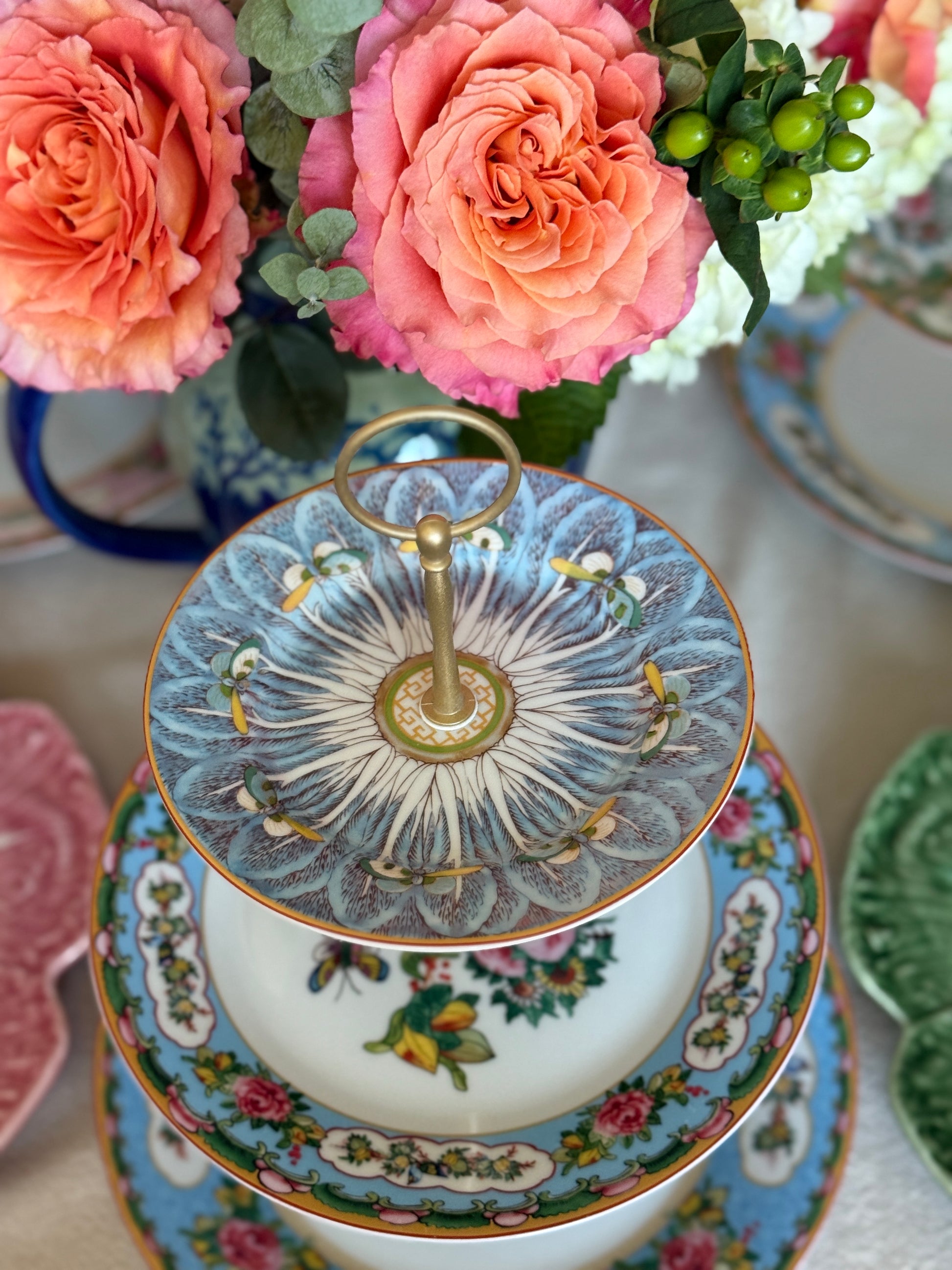 Williams Sonoma Famille Rose Three Tiered Stand - Blue Bok Choy